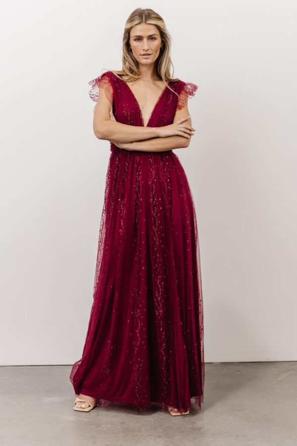 Women Annika Sequin Mesh Maxi Dress Wine | Baltic Born Embellished Sequin