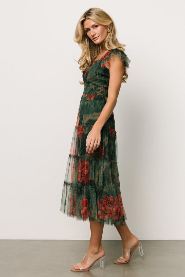 Women Clementine Tulle Midi Dress Dark Green Floral | Baltic Born Tulle Styles
