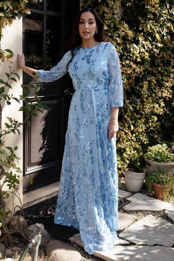 - Material has blue sequins throughout