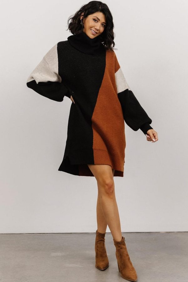 - Black, spice, and ivory color block