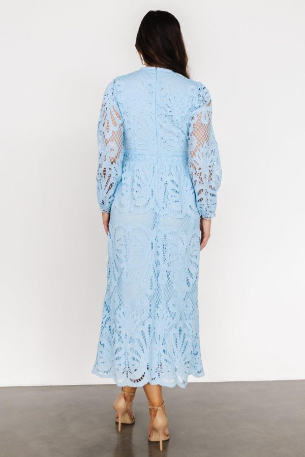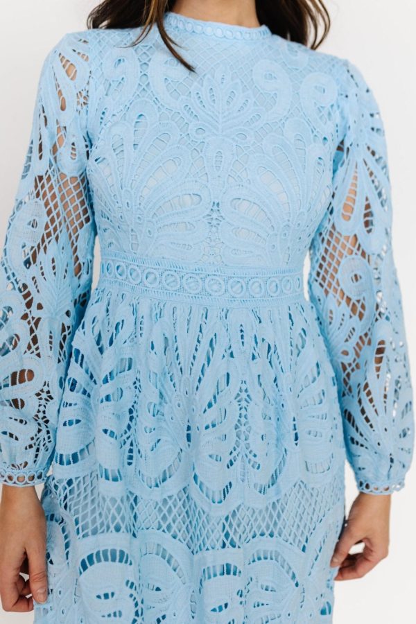 - Lovely sky blue lace draped over matching blue lining