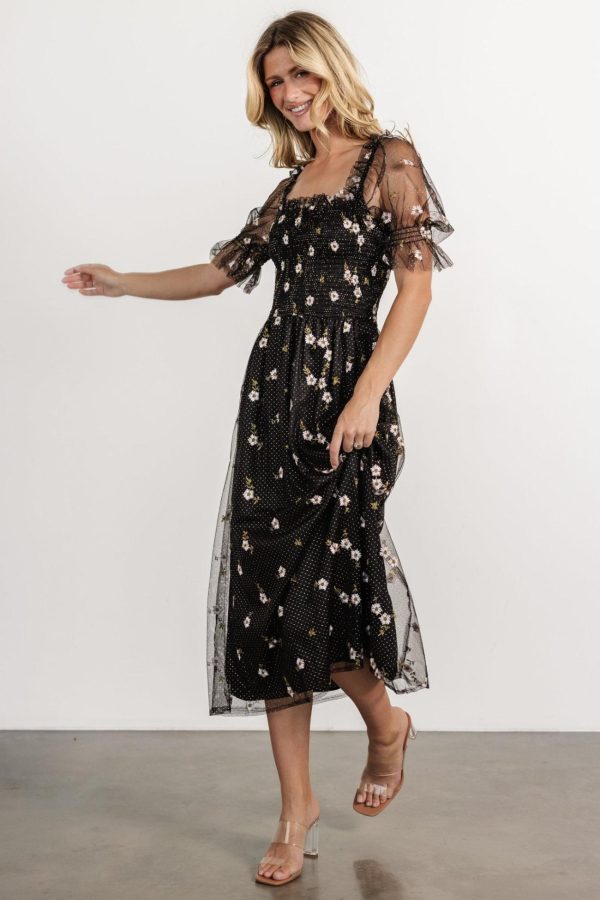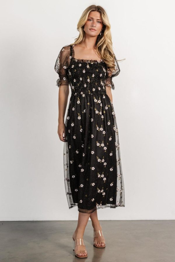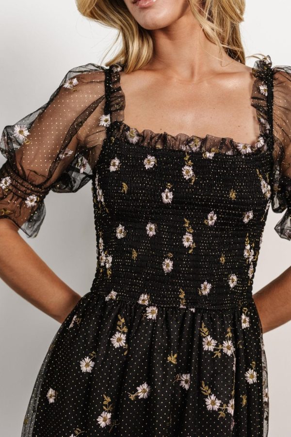 - Mid-length sleeves with smocking and ruffle detail at cuffs