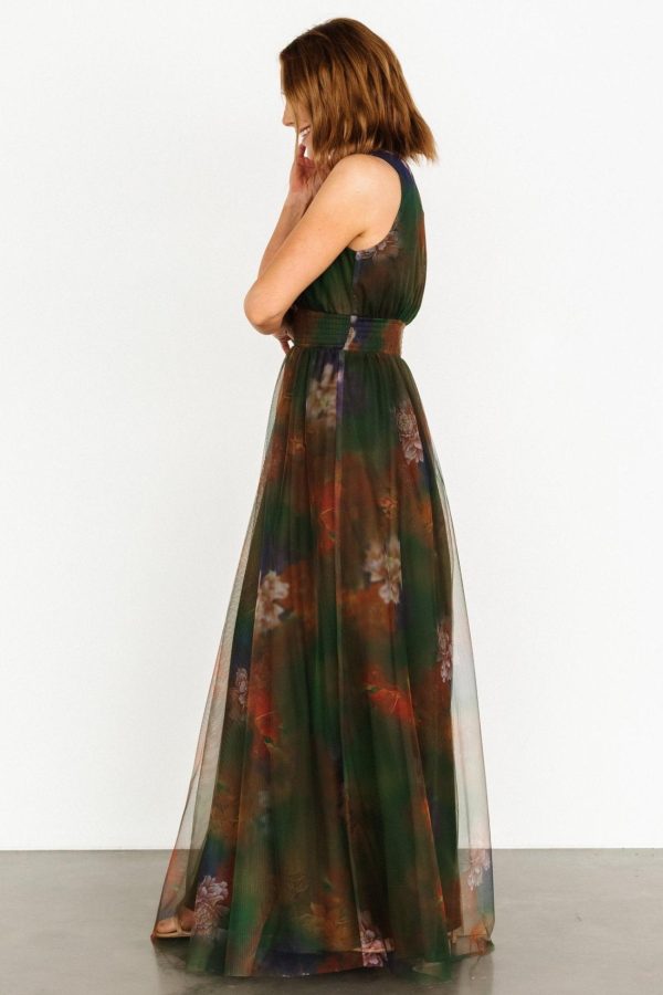 Women Kamila Tulle Maxi Dress Olive Multi Floral | Baltic Born Maxi Dresses