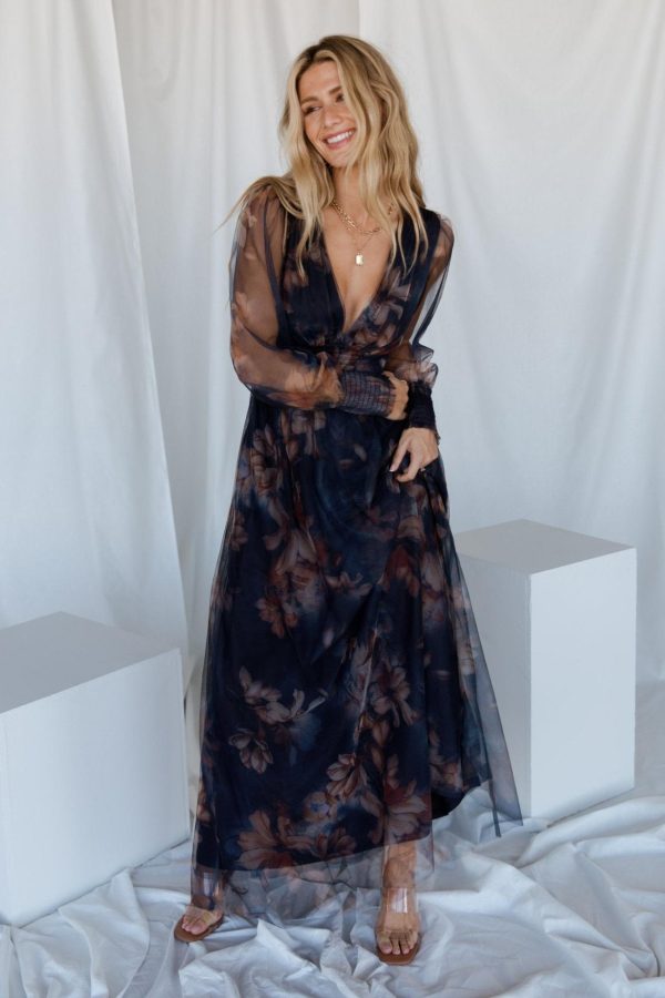 Women Layla Tulle Maxi Dress Dark Blue Floral | Baltic Born Wedding Guest