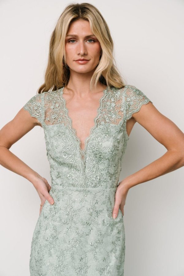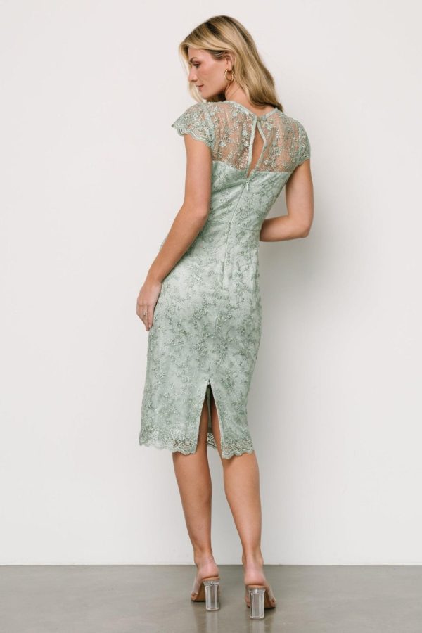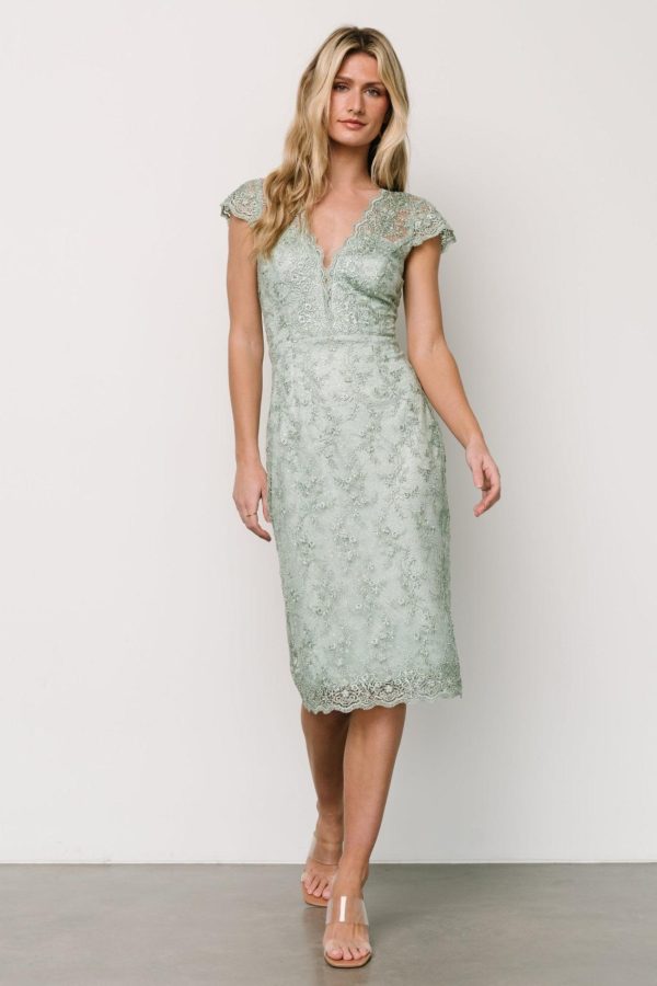 Women Oriana Embossed Shimmer Midi Dress Sage | Baltic Born Embellished Sequin