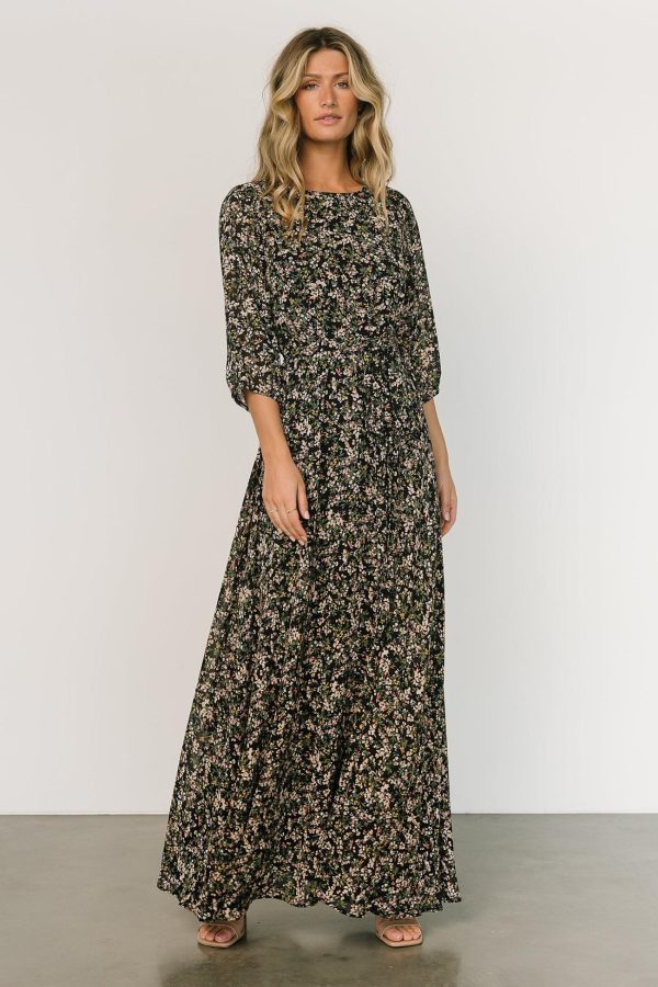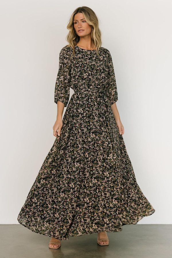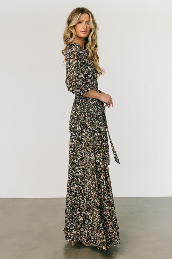 - Black background with green and pink floral