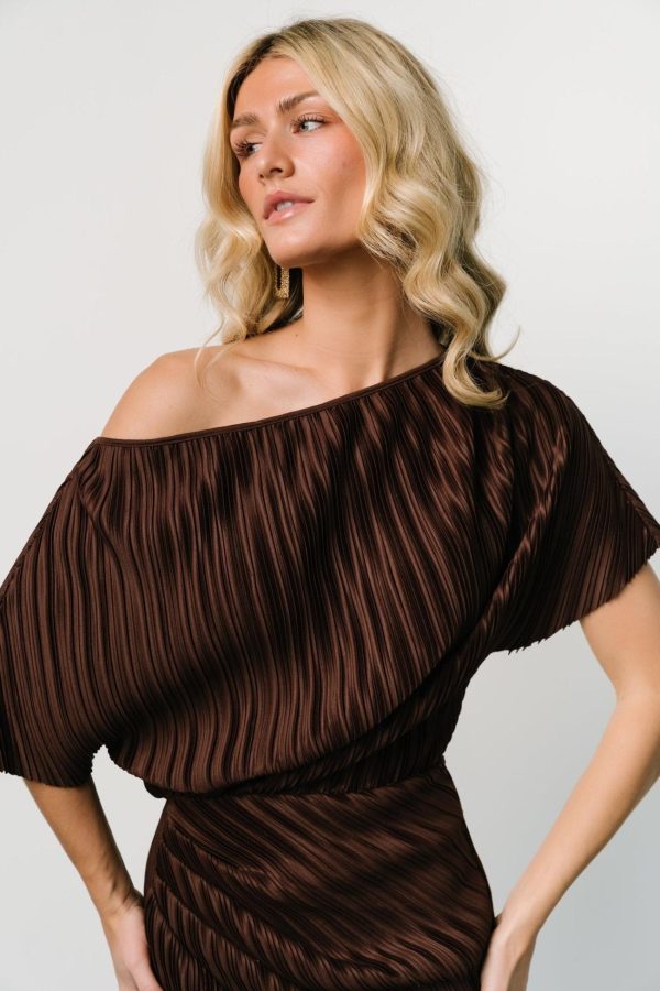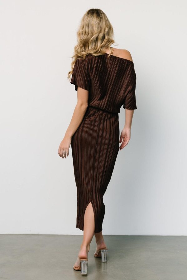 Women Winslow Pleated Midi Dress Dark Brown | Baltic Born Midi Dresses